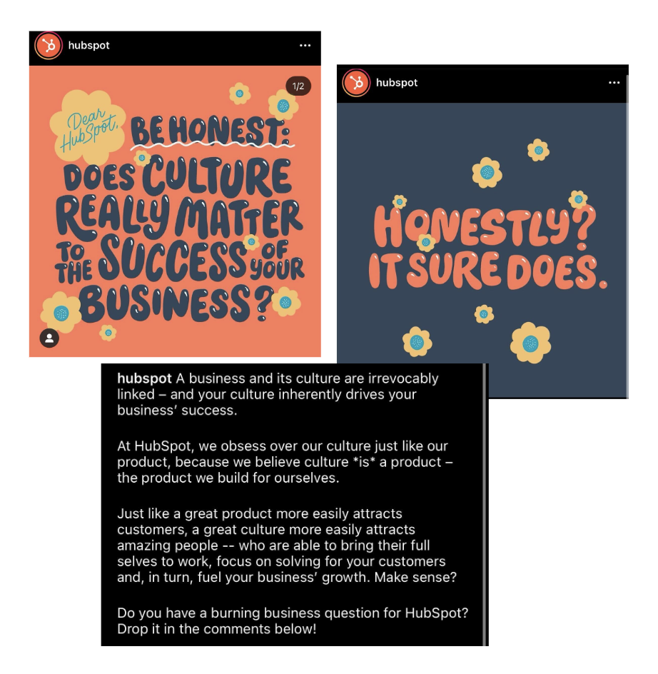 An example of one carousel post I put together for Dear HubSpot.